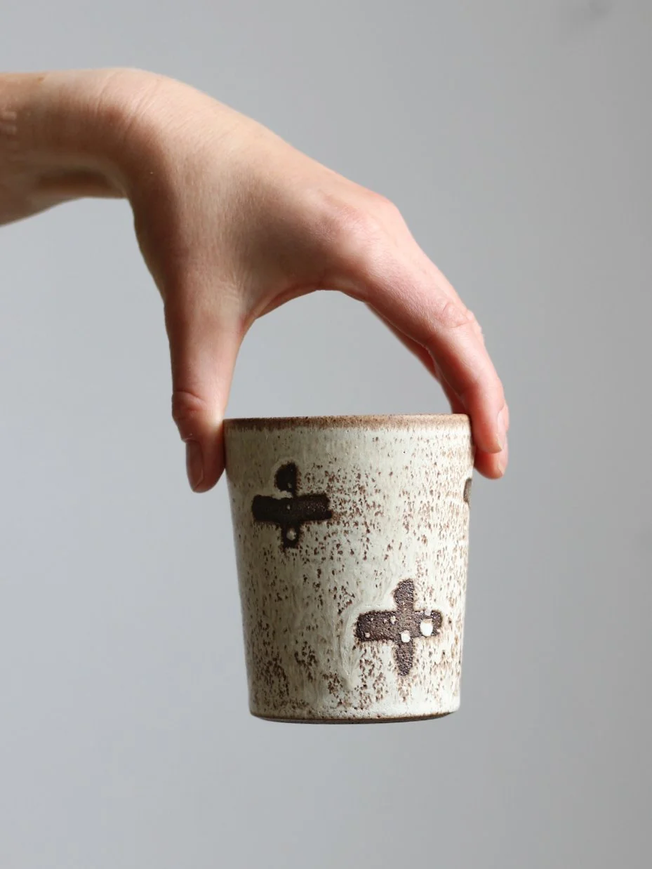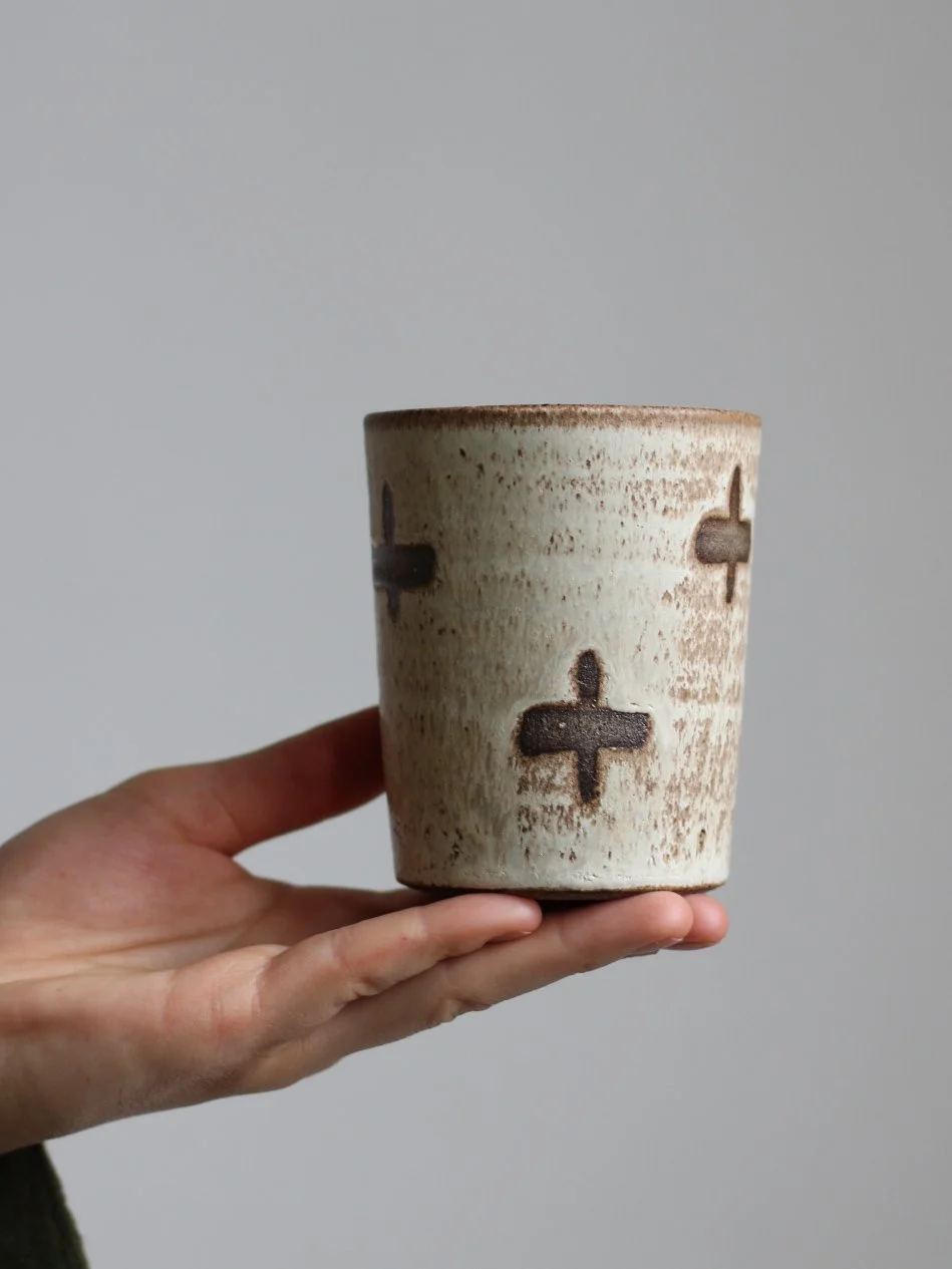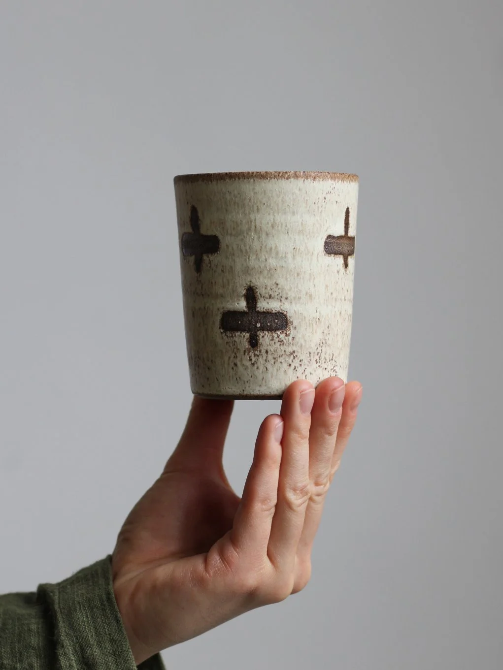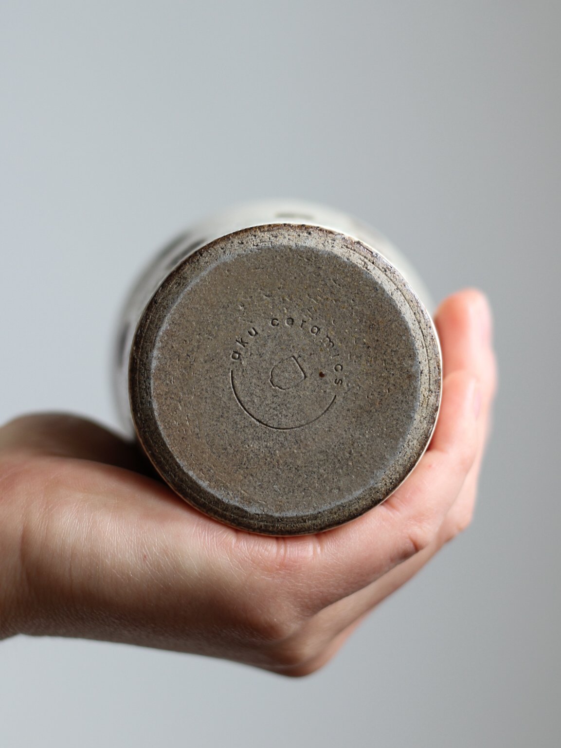 Beaker made on a pottery wheel with a grey clay and finished with Dune glaze. With a capacity of approx. 250 ml, it's ideal for enjoying your morning coffee, afternoon tea, or evening cocoa.