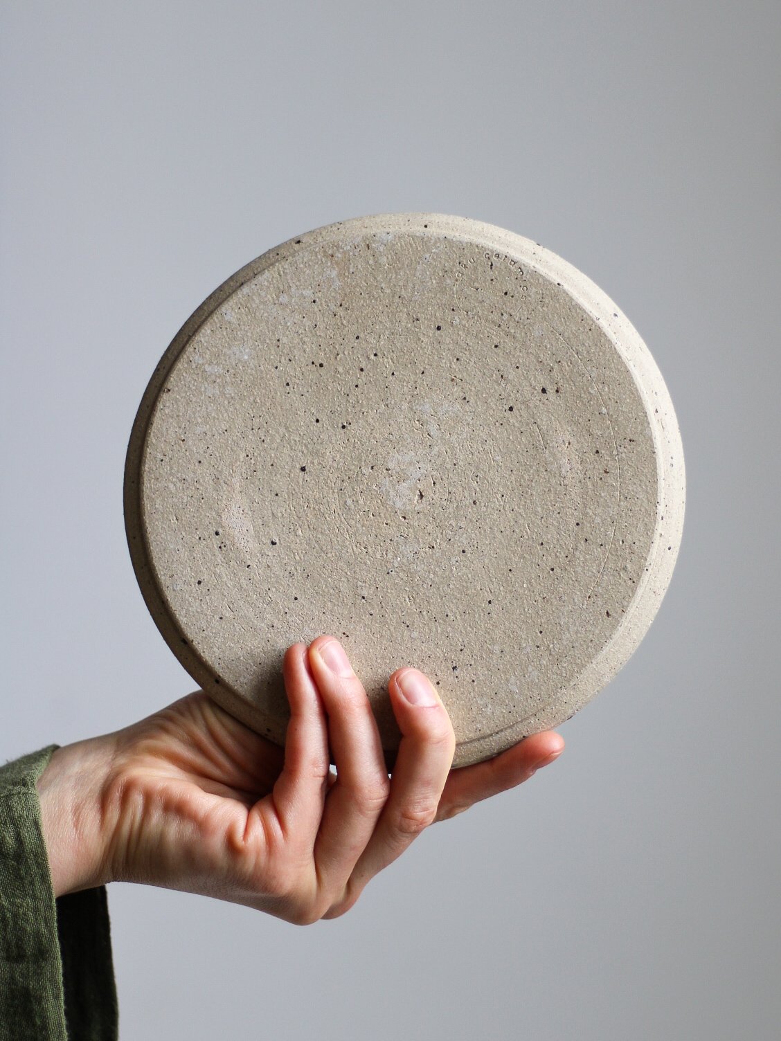 A medium, wheel-thrown plate in neutral beige clay, glazed with Haar. Perfect for everyday meals and special occasions.